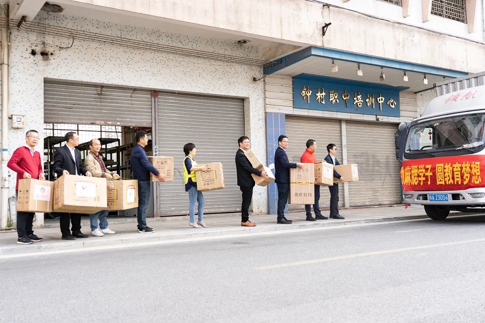 本次公益助學(xué)活動,由番禺工貿(mào)職教集團(tuán)發(fā)起,諾登公益主辦,廣東省青企聯(lián)、德興小學(xué)、家寶紅木家具、長鷹電子、深學(xué)(廣州)教育、廣州和富汽車等單位協(xié)辦,同時(shí)得到了番禺區(qū)教育局、番禺區(qū)職業(yè)技術(shù)學(xué)校和民辦教育協(xié)會的大力支持。在活動推進(jìn)的過程中,各捐贈企業(yè)急受助方麻腮小學(xué)之所急,針對該校教學(xué)物資緊缺的現(xiàn)狀,群策群力、分工協(xié)作,將公益活動募集的20萬元資金購置了用于圖書室、音樂室、美術(shù)室、體育室和科技室等場室急需的設(shè)備器材。11月28日上午,各捐助單位的領(lǐng)導(dǎo)和代表齊聚番禺職校北校區(qū),全員參與,親手將一箱箱捐贈物資搬運(yùn)到即將開往貴州赫章縣的貨車上,將一份份濃濃的關(guān)愛之情傳遞給遠(yuǎn)方山區(qū)貧困的孩子們。